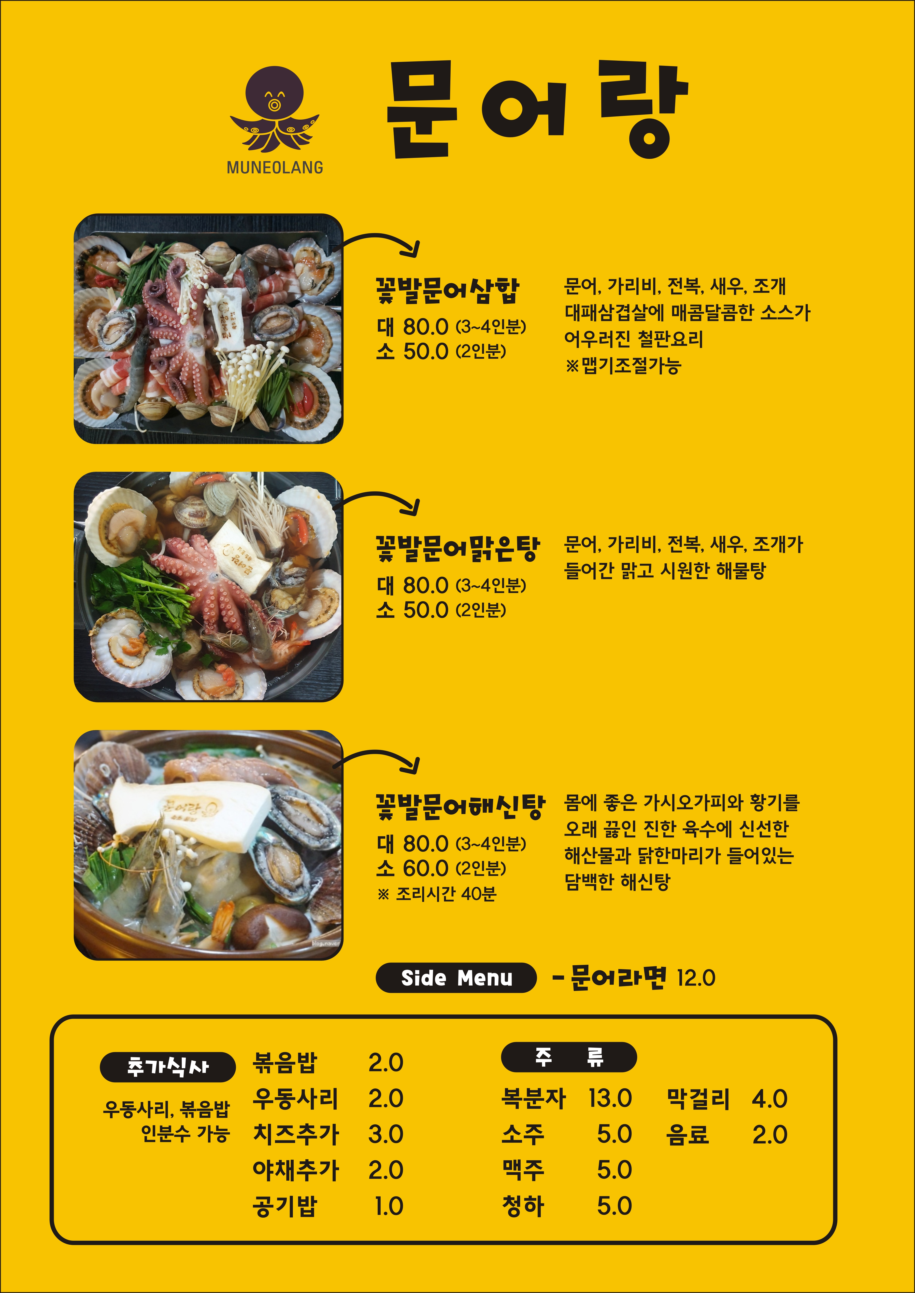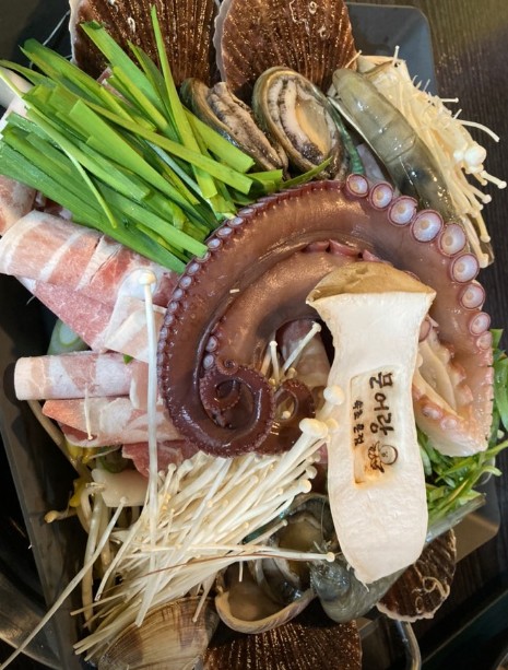 인기메뉴는 문어삼합입니다.