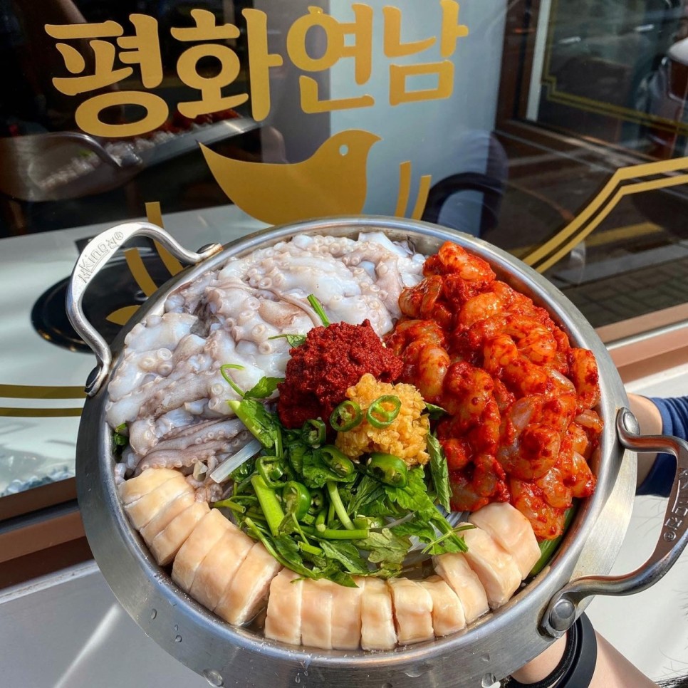 좋은 재료와 전골 스타일의 낙곱새를