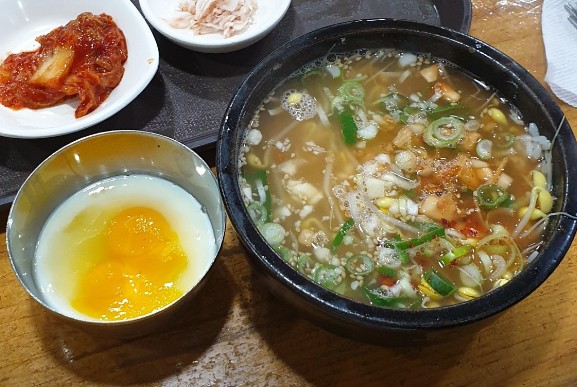밥을 말아 끓여 나오는 콩나물국밥을 먹을 수