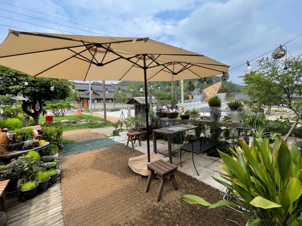 개울 옆 야외테라스에서 자연을 느끼며