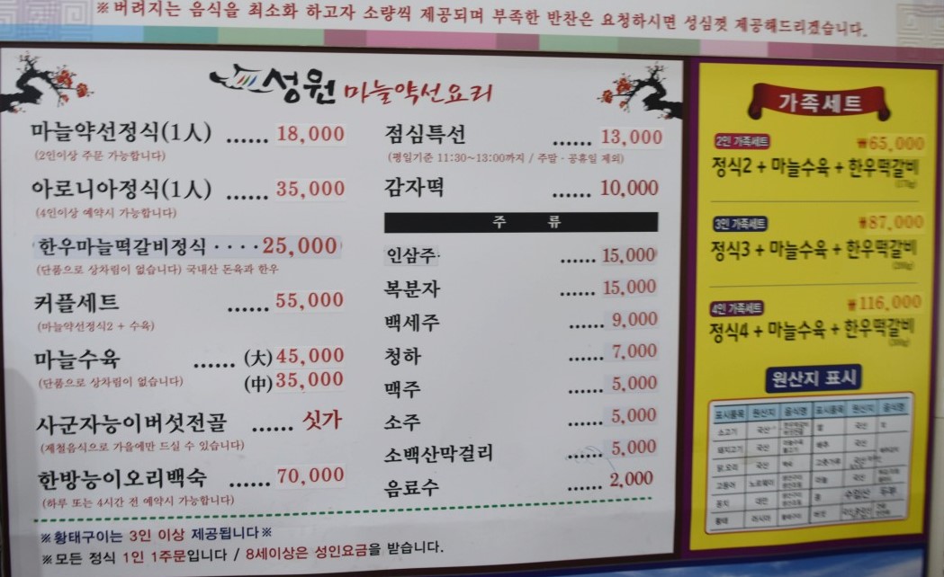 인기메뉴는 마늘약선 20첩 밥상입니다.