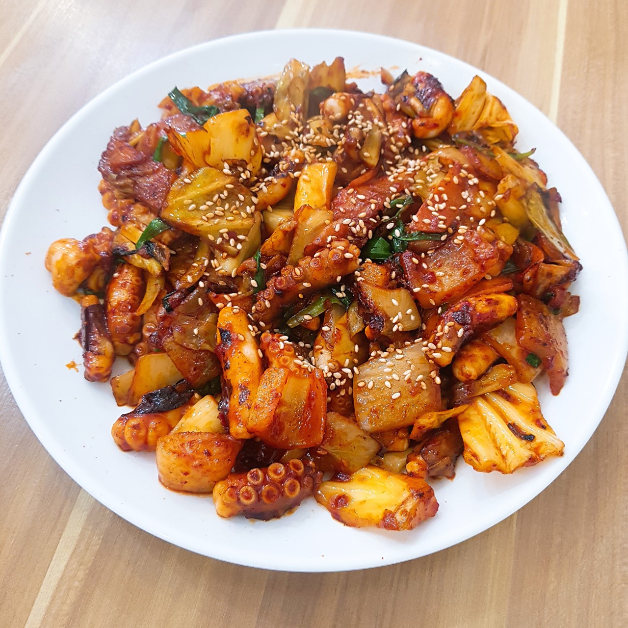 매콤한 낙지볶음과 함께 먹으면 궁합도 찰떡! 고기와 채소, 국물까지 완벽하게 조화로운 이 메뉴는